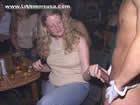 bold and there was an obvious sexual energy to the night. "Well what?" "Do either of you guys have $20 dollars?" She said she was ready to dance if we were ready to pay. We all laughed and turned our attention back to the activity around the room for a while. There was a girl who had obviously had a little too much to drink who began dancing with one of the guys. He put her hand down his pants and she grabbed his cock . You could actually see her stroking it as he opened her blouse and played with her tits. I wasn't aware of how aroused I was until Laura said that I obviously needed a private dance. I agreed but remined her the the female dancers never left the stage area. "Show me the money" she said. I pulled out twenty bucks to call her bluff and she immediately stood up in front of me. Even though she was obviously nervous and giggled through most of it, I was really turned on. She knew how to tease and took her time. I took nearly a whole song for her to lower the zipper completely and expose her breasts. They were gorgeous. Large yet firm with a beautiful large nipple. Karen reached into my lap and felt my cock. "I think he likes it Laura". Duh. When the dance was over and Laura sat back down, she didn't bother to close her top all the way. I liked the view. Others did too. Her dance attracted a lot of attention. A few minutes later on her way back to our table from the bathroom, a guy stoppd her. They chatted for a few minutes and then she returned to our table. He had asked her to dance for him and his buddies. She asked James what he thought. He said he was OK with it, that it had been a fantasy of hers and now she had a chance to do it. I made a mental note to ask about that fantasy later. She walked back over to the guys, chatted with them for a few minutes and when a new song started she began to dance. This time she removed her top completely. There was a zipper on the front of her skirt that went from the hem up. She unzipped enough that she could squat in front of them and expose her pussy. I couldn't believe it. When she came back to our table - topless - a manager from the club came by and said she could not dance for the other customers. She could dance for us at the table or partipate with the male dancers but no more private dances. A few minutes later a tall black dancer came by and started chatting with us. He was a nice guy and even apologized to Laura about the boss coming down on her. Laura said that she had made a few bucks doing it and wanted to use them to buy Karen a couple of dances. She handed the money to him and told Karen to have a good time. Laura was well aware of Karen's attraction to black guys. It was something to watch. He had her open her legs enough for him to put one leg between them. As he danced he moved closer causing the split in her dress to fall completly open, exposing her cunt. During the second song he ground that leg into her crotch as he gently stroked his penis right in front of her face. Her breathing deepened and she became visibly excited. So did Laura, just from watching. When it was over Karen told Laura it was her turn. Laura agreed but said she had her eye on someone else. Our dancer friend said he would go get the guy Laura pointed out to him and suggested that we move into a more private, enclosed area. We did and sat along a couchlike bench along the wall. We decided to mix things up a little. I sat on the far left with Laura to my right, Karen next to her and James on the far end, When the dancer arrived he squeezed between the two ladies while we all got aquainted. Eventually he began his dance for Laura. When he finally opened his pants for her it was apparent why she chose him - he was very well hung - thick as well as long. He actually stepped up on to the seat and moved his crocth inches from her face. His pants were still on, but he moved them aside and began to thrust so that his prick actually brushed her face. The song ended and he began the second one on the floor. He began to play with the zipper on her halter. When he got it all the way down he began to play with her swollen nipples. With his other hand he continued to expose and then hide his prick. Eventually Laura worked up the nerve to touch it. When he didn't stop her she wrapped her fingers around it and began to stroke. I looked over at Karen, she was masturbating. She smiled at me, removed her hand from her pussy, reached over to James' hand and guided it to the slit in her dress. Her hands then moved up to Laura's breasts. Her mouth followed. My hands went to Laura's inner thighs and she opened them wider. Her pussy was soaked. I withrew my fingers and let Karen lick the juice away. Laura pushed the dancers pants down. He climbed back up on the seat. Now Lauren was giving him a hand job rubbing his dick along her cheeks.and face. Suddenly she opened her mouth and took him in - at least as much as she could. Her left hand was in my lap. The guy fucked her mouth for two more songs. We left very quickly after that and went to the hotel I fucked Karen on one bed while James and Laura fucked on the other. We took turns watching When James and I were spent, the two women went at it. Laura's first time, Karen's third. I wanted Lauren. Tight, firm, 23, beautiful tits. Karen wanted James. Later we found out they wanted us. I guess it wasn't meant to be. I got a BJ from Lauren at an adult bookstore the next day while Karen did James but I will keep that for another day. We have gotten together several times since. Laura is wild. She loves people to see her. Karen is still a little more reserved and has to have some time to warm up to situations. James and I are more than happy for them to do it any way they like.
